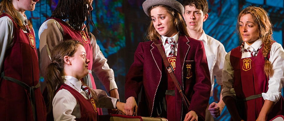 As the play opens it is like being wrapped in a warm blanket of cosy fun. As we meet the pupils at the school – six girls and a random boy with a horse – we instantly know which is which, they are very individual with back stories which we learn more about as we go on their journey. The whole escapade is accompanied by singing – some original and some not – and on and offstage musicianship – it is all joyful.