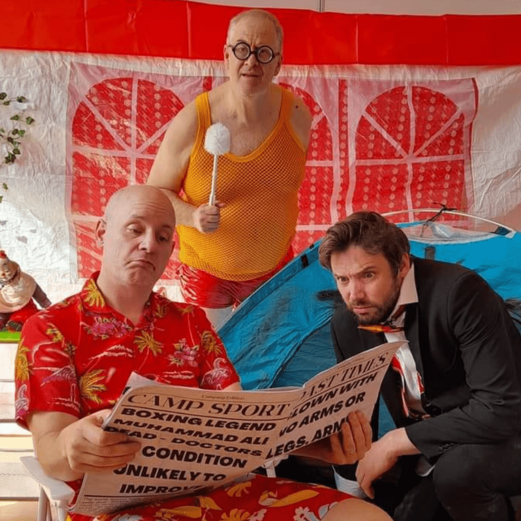The tiny Alma Tavern Theatre seats about 40 and on the hottest day of the year it was advisable to remain still; pity the poor performers! With a stage littered with the trappings of camping, as well as the aforementioned dung, animal trap and plenty more besides, the visuals are enhanced by a projection of the initial car crash and some gently suggestive lighting.