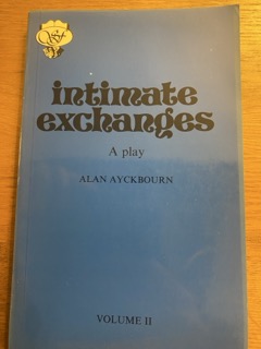 The plays begin with a women faced with a small, fairly, trivial decision. Should she resist having the fi rst cigarette of the day before 6pm? On some nights her willpower is strong enough, on others is isn’t. The two quite separate chains of events that result from her choice are published under Volume I and Volume II. In each, at the end of the first scene, another character has to make a further decision, the time of a slightly more important nature. As each scene ends further and more crucial choices still have to be made, culminating in a major course of action. Thus each play is a single strand of a much larger web of interconnecting scenes. Simple mathematics will tell you that there are over thirty scenes and sixteen versions, some vastly different, some only slightly so. Yet it is the indigenous group of characters who have to make these decisions that makes Intimate Exchanges so enthralling, so funny and, at times, so poignant.